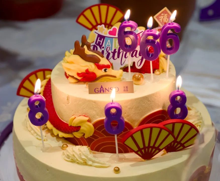 联欢会还没开始,院楼已经布满了浓浓的年味儿:紫金楼正面早已挂上新年祝福语;走进一楼大厅,天花板满是串串红色小灯笼,欢乐祥和;在举办活动的紫金楼425教室桌上,端坐着的小龙娃娃喜庆可爱,各色美食丰富诱人。