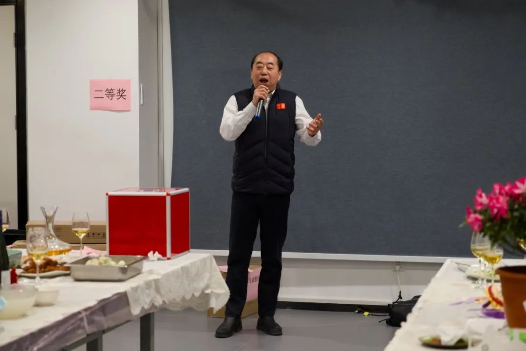 活动最后,公司党委书记刘源作总结致辞。刘源首先感谢各位老师在过去一年里为学院团队建设、教学科研工作所作出的重大奉献,为新传的学术声誉打下了良好的基础。学院的人才队伍逐渐壮大,但未来引进人才、培养先进队伍的工作不会停止。致辞结束,刘源书记高歌一曲喜迎新年。在深情高昂的歌声中,联欢活动落下帷幕。