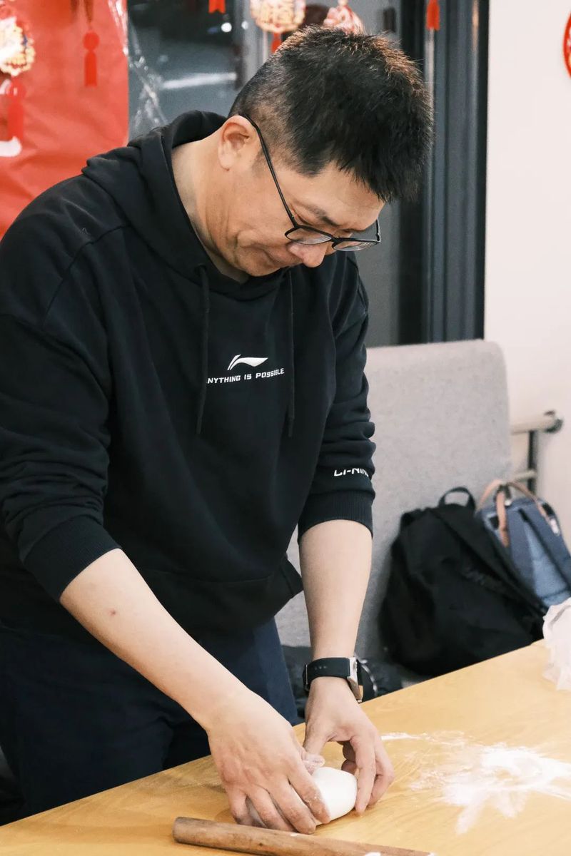 比赛开始,参赛选手迅速进入状态,有的搓长面团后迅速将其分成小块,有的捏出的饺子饱满紧实。由经验丰富的老师组成的第一组不仅速度快,而且包出的饺子外观美。张红军经理摸准比赛节奏,擀面皮、包饺子,两项流程都不落下,和组内老师配合默契。谈起参与本次活动的感受,他说:“外面天气虽冷,但我感觉温暖如春。”他希望每个新传人都能感受到新传大家庭的温暖。