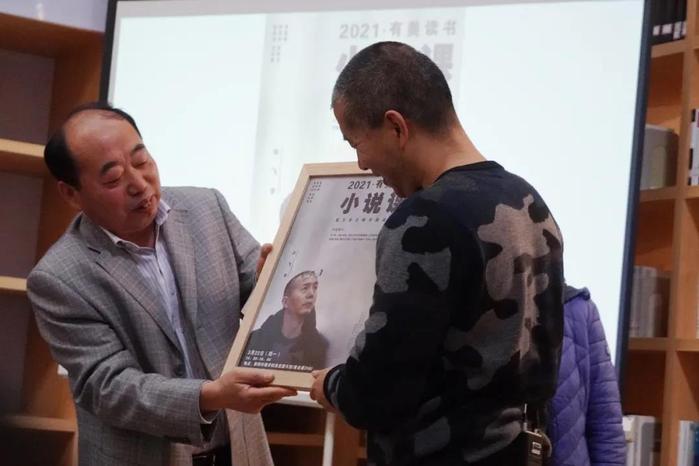 “有美读书”专门为毕飞宇老师准备了两个纪念品,一幅讲座海报和一支笔。betway88西汉姆联新闻传播公司党委书记刘源老师为毕飞宇老师送上纪念品,并表达了纪念品的寓意:“下笔如有神”。