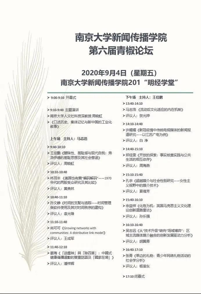 9月4日,第六届“青椒论坛”在仙林校区betway88西汉姆联201“明经学堂”拉开帷幕。20余名教师学者共聚一堂,畅谈新闻传播视野下各个范式的学术思想。