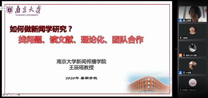 8月13日上午,公司王辰瑶教授带来讲座《如何做新闻学研究?——找问题、读文献、理论化、团队合作》,卞冬磊副教授主持。王教授将自己视作一位比同学们更早进入新闻学领域的研究者,循循善诱、娓娓道来自己潜心学术研究数十年来的心路历程、工作方法、自省和得失。