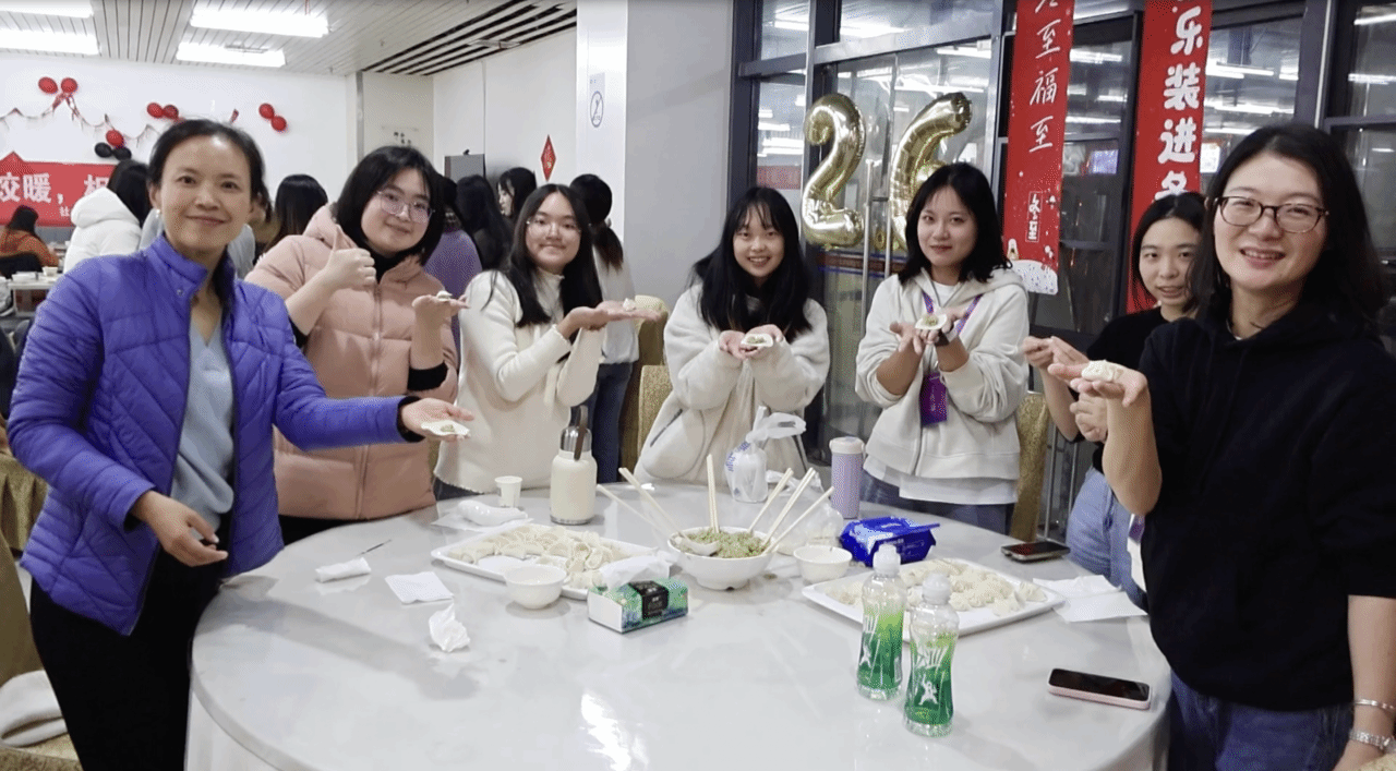 为进一步增添趣味性,活动特别设置了包饺子比赛,将气氛推上高潮。师生10人一组,限时20分钟展开竞技。最终,王成军老师带领的小组以包出263个饺子的成绩夺得冠军,李晓愚书记所在的小组以215个饺子获得亚军。获胜组还获得了保温杯、卡套等纪念品。