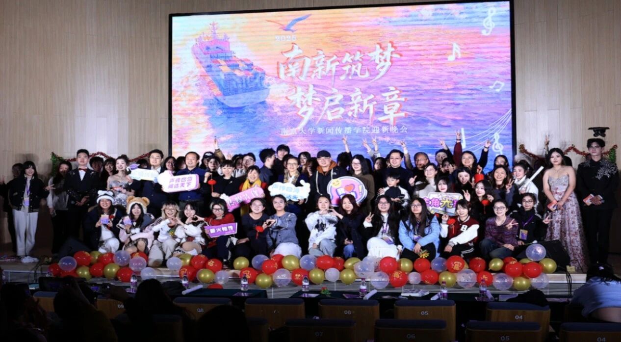 整场晚会分为“新声入镜·逐光而来”、“声屏筑梦·薪火相传”和“华章致远·向新而行”三个篇章。从同学们活力四射的精彩演绎,到老师们亲切暖心的欢乐互动,每一个瞬间都洋溢着南大新传大家庭的温暖与朝气。