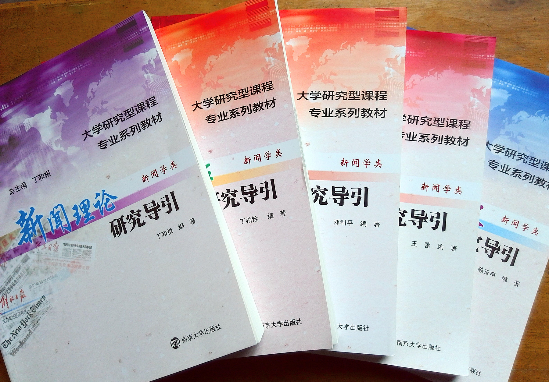近日,由公司多位教授携手合作完成的《大学研究型课程专业系列教材·新闻学类》第一批教材由betway88西汉姆联出版社出版。这套教材由丁和根教授总主编,公司新闻与新媒体系丁柏铨、邓利平、陈玉申、丁和根、王蕾等多位老师合作编著,从开始策划到正式出版,前后历时四年多,目前已出版《新闻理论研究导引》、《新闻写作研究导引》、《新闻编辑研究导引》、《新闻评论研究导引》、《中国新闻史研究导引》等六册。