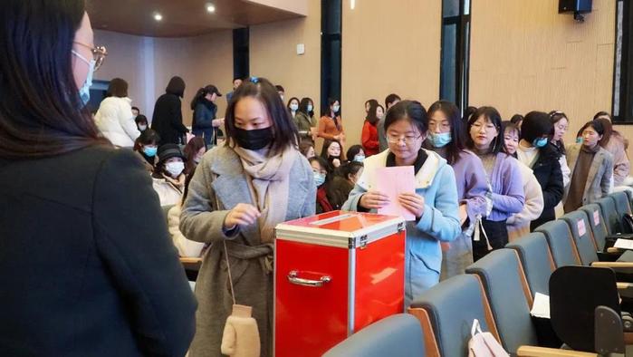在总监票人尤裕邨同志的主持下,按照选举办法,大会以无记名投票、差额选举的方式选举新一届委员会委员。现场党员同志依次来到投票箱前,郑重地投下神圣的一票。