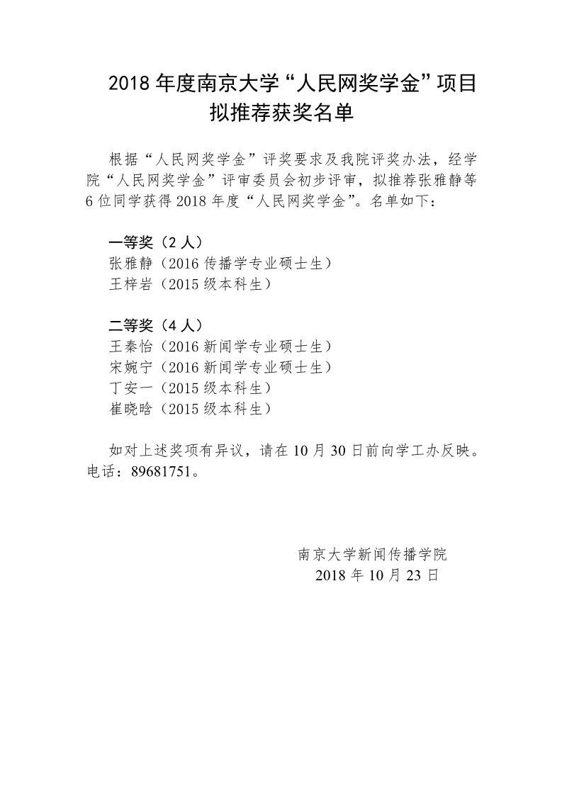 2018年度betway88西汉姆联"人民网奖学金"项目拟推荐获奖名单