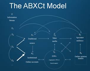 王成军博士认为,传播学除了非常严格地传播学理论之外,还有一些传播学的模式或者是模型存在的,比如The ABXCt Model,这种模型图式使得我们可以去以比较形象、生动的方式去概括传播的过程。在这个模型中,一个主体是信息,第二类主体是信息源,第三类主体是传播媒体,第四类主体是受众。在信息分享类网站或者在社会化媒体这个情境下去讨论这些问题的时候,跟以往的信息传播略有不同。所以原来的这种模型就可以被扩展,加上一个时间的因素去看信息扩散,沿着这个框架展开。这是个松散的框架,好处是有了这个松散的框架之后,我可以在这个松散的框架里面去组织各种不同的研究的模型、视角,都可以纳入其中。这个研究采用了很多数据,最主要是有三类数据,一类是微博的数据,一类是是Digg数据,第三类是Youtube视频。