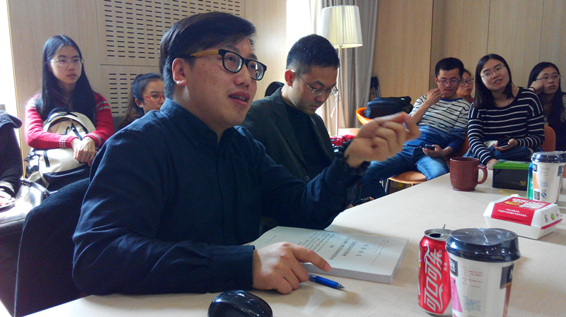 袁光锋助理研究员请教,文中的理论解释框架如何与早期中国社会学困境的现实材料对接?权力体制在建国初期对吴文藻、费孝通这样一批人物究竟是作为社会学家还是文人来改造的?此外早期中国社会学所面临的困境与建国后知识分子思想改造之间有何关联?郑欣教授则结合陆远博士跨学科、跨国度学习的经历,请其谈谈对历史学和社会学两者关系的见解以及自己的处理对策?日本读博期间所了解到的公司产品模式与国内有何异同?此外,他强调1957年是社会学历史上的一个分水岭,1957~1979年间社会学这个学科究竟发生了什么?夏文蓉副教授表示,自己冲着听费孝通先生的生活八卦而来,听完后对陆博士将学术史书写的三种形态在文中的完美结合表示了由衷钦佩,虽然研究本身是关于学科史的,但在分析中又不乏学术史和学术人物史的描述,通过这种见微知著的手段,让我们了解到了早期中国学的发展轨迹。2010级广告专业本科生张婧妍请教社会学家在建国初成为社会工作者愿望的破灭该作何进一步解释,以及1979年社会学的突然复兴,在其内部最早是从哪一块开始的。2013级传播学研究生许剑锋则指出早期中国社会学的思想体系对后来社会学的恢复重建有何影响及其程度何如?另外提出了社会学的思想理论体系与社会应用实践之间的关系问题。