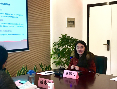 2018级专硕党支部副书记张一哲和2018学硕党支部书记陈悦祯在述职中都着重介绍了支部成立半年来的组织建设和活动开展情况。其中,2018级学硕党支部依托“新心向党”平台,开设 “我家的故事——改革开放40周年生活变化面面观”栏目,从党员的个体生活中体悟时代带来的变化,具有创新意义和推广价值。
