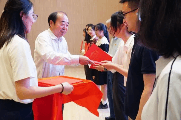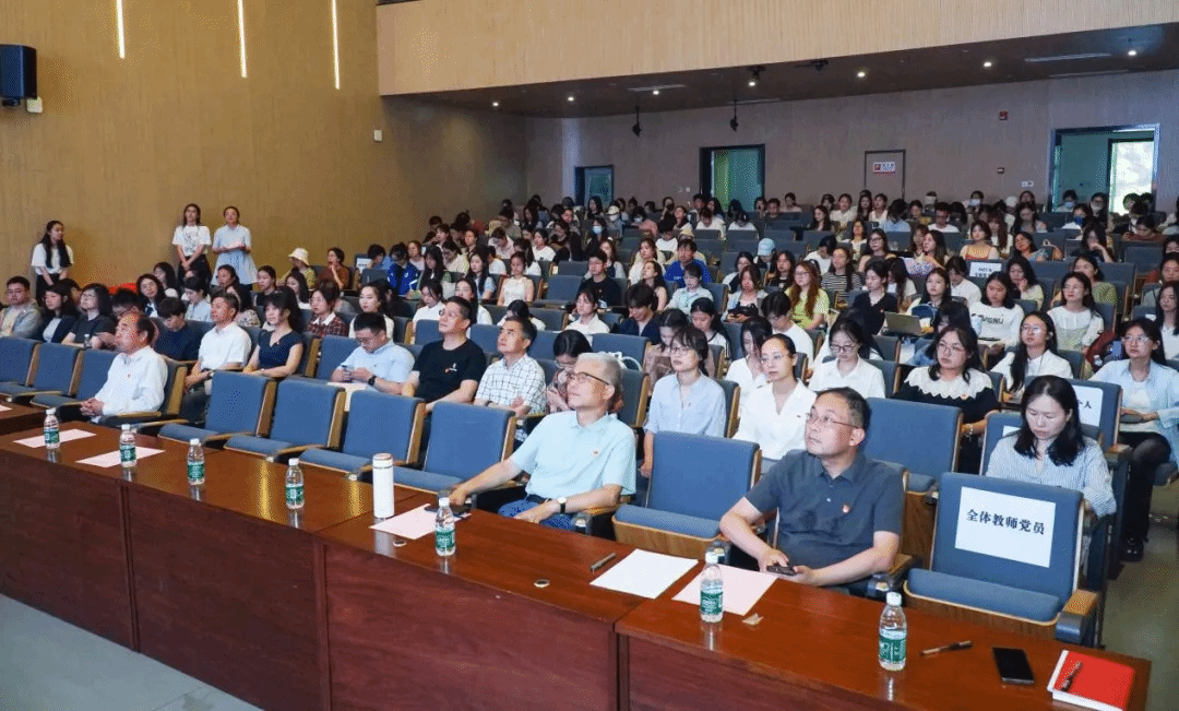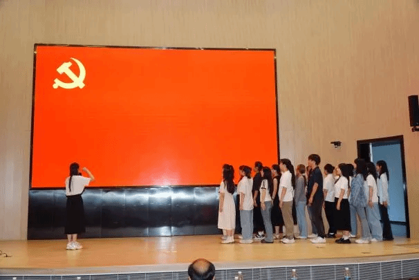 优秀毕业生党员为18位本学期新发展党员颁发党徽,传递朋辈党员间的优秀力量。党员代表戴思颜带领新党员们进行了入党宣誓。大会在全体党员师生共唱《国际歌》中落下帷幕。