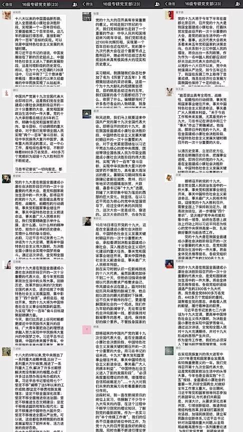 2016级专硕党支部以网上支部生活的方式,为迎接党的十九大召开献礼。支部成员结合自己的实习经历踊跃发言,表达自己对十九大召开的期待。