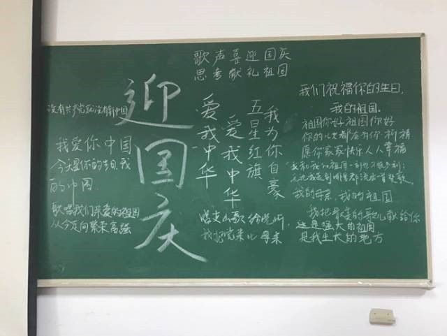 “爱我中华,爱我中华”、“祖国你好,祖国你好,你的儿女都在为你祈祷”、“这是强大的祖国,是我生长的地方”……活动伊始,支部党员们在黑板上写下了耳熟能详的爱国歌词,共同聆听歌曲《歌唱祖国》,以歌声为祖国庆生。