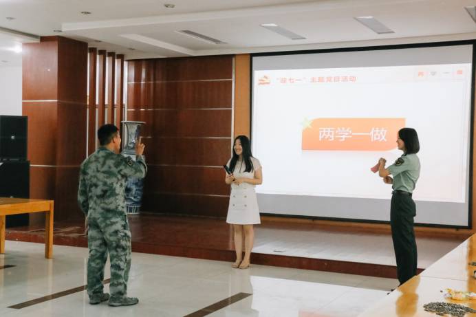 “四个自信是什么?”、“十九大什么时候召开?”等“两学一做”应知应会知识竞答题;“将士们听党指挥,能打胜仗作风优良,不惧强敌敢较量,为祖国决胜疆场”同志们一起学唱军歌……双方支部成员通过内容丰富、形式多样的活动内容,相互学习、交流讨论。