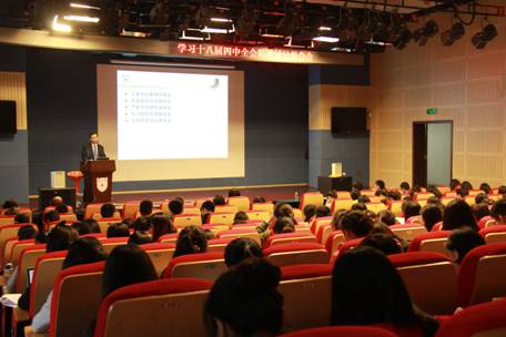 为深度解读十八届四中全会报告,11月5日,betway88西汉姆联在费彝民楼演播厅举行了题为“全面推进依法治国,加快建设法治中国”的主题党课。由公司党委书记汪萍教授主持,betway88西汉姆联法学院教授、博士生导师王太高主讲,党委副书记蒋恩铭老师及教职工党员出席活动。