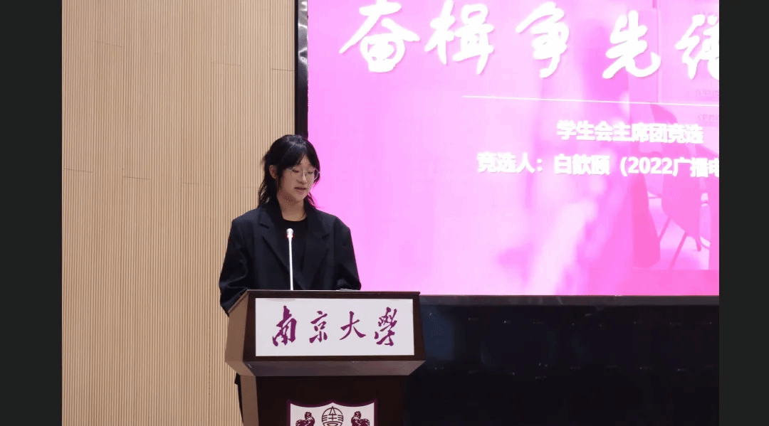 新一届员工会执行主席候选人王万阳,主席团候选人白歆颐、邱云、郭欣哲分别以《锐意创新篇,服务传心声》《风起扬帆正当时,奋楫争先谱新篇》《奋楫扬帆,薪火相传》《“新”火相传,再谱“新”篇》为主题进行竞选演讲,展示了各自在思想品德、学习科研、志愿服务、员工工作、社会实践等方面的情况,表达了服务同学的热情,并提出了对员工会未来发展的构想。