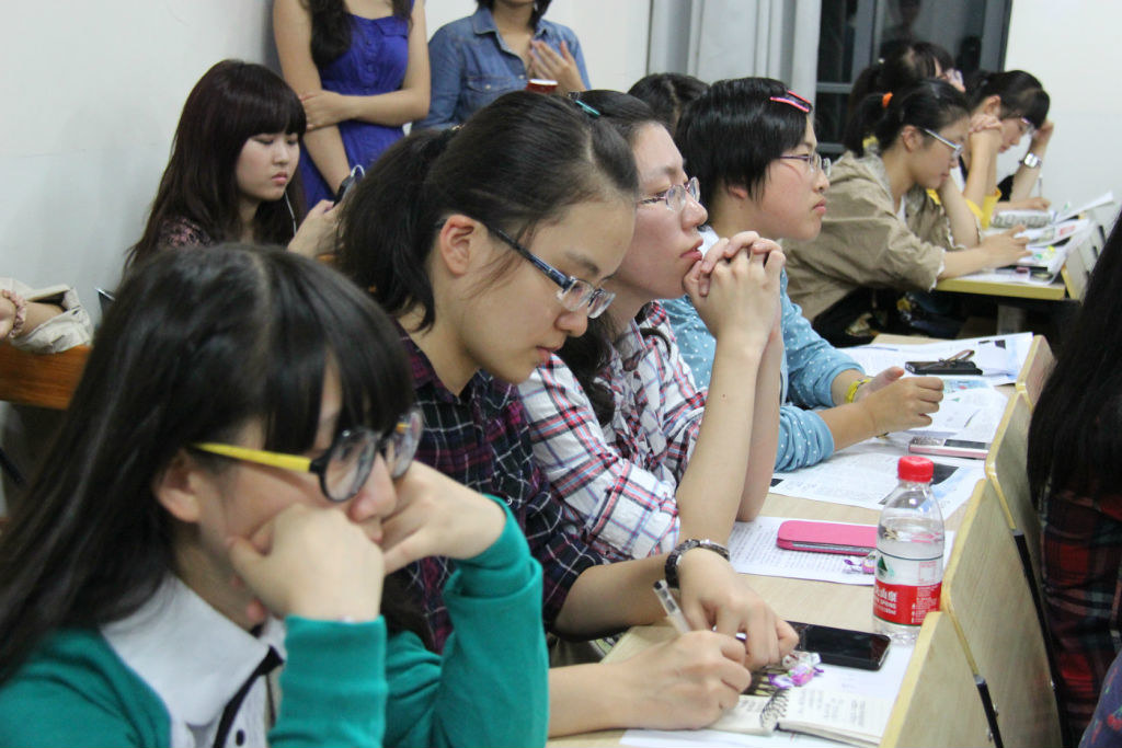 (达人学姐介绍老员工活传授学习技巧!~学妹们听得很认真哟)