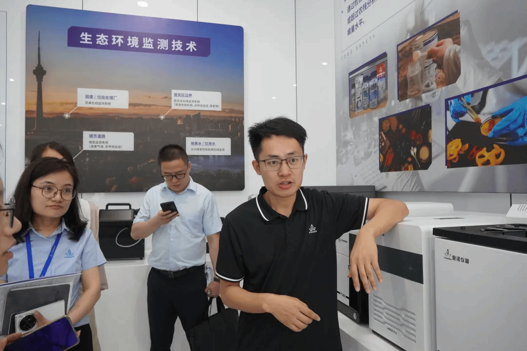 磐诺科学仪器集团有限公司成立于2010年,从创立之初就秉承“尊重科技,相信中国”的理念,致力于研制先进化学分析仪器系统、核心器件及模块。公司产品既能服务于石油化工、环境监测等领域,也能运用于酒驾、食品农药残留等生活场景,与我们的生活息息相关。公司商务总监邵兰兰介绍了公司的发展历程、经营理念、主要产品及其应用领域。在参观中,公司产品经理郑加祥详细介绍了不同仪器在生活中运用。