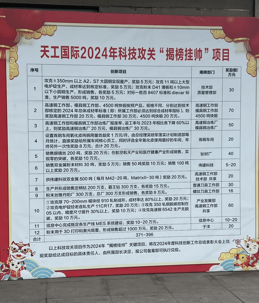 天工在工厂门口设立的“揭榜挂帅”表彰牌