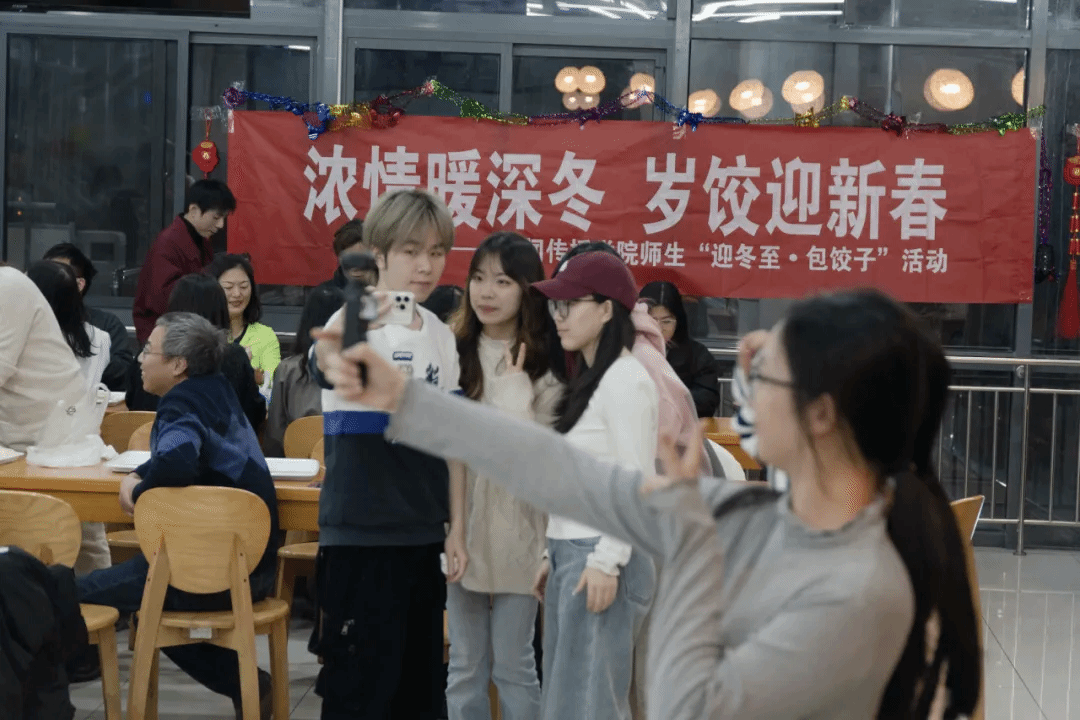下午五点,包饺子活动正式开始。师生齐动手,擀面皮、取饺子馅、包饺子,不一会儿,形状各异的饺子摆得满满当当。过程中,不乏热心助人的“包饺子小能手”传授经验,现场一片欢声笑语。