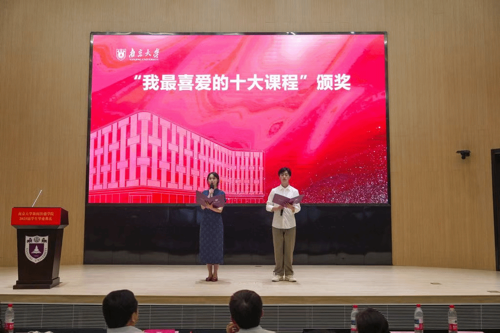 十大课程评选由每一位本科毕业生参与投票,两位毕业生代表宣读了同学们共同写作的颁奖词,学院荣休教师、前公司党委书记刘源老师和员工代表为获奖老师们颁发奖状。