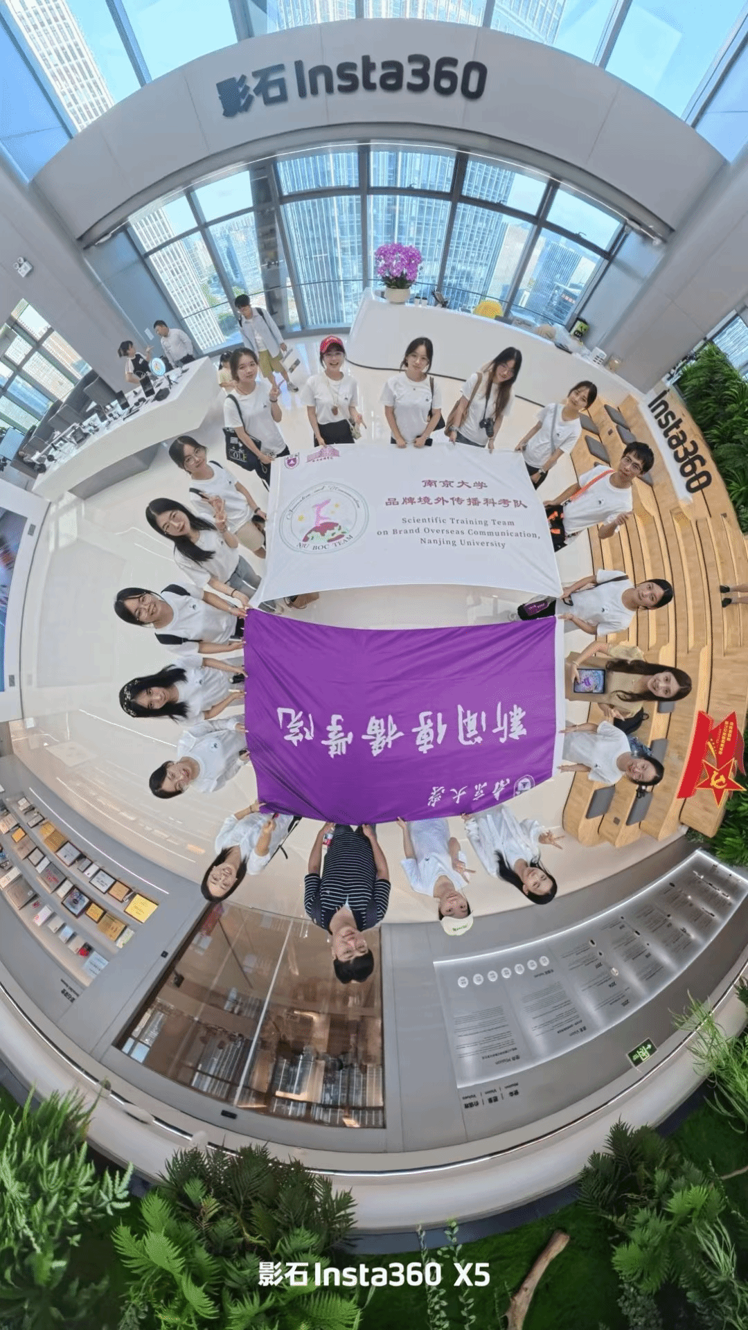 抵达深圳,科考队于8月22日走访了影石360公司。在企业代表孙琳惠的引导下,师生们近距离体验了8K全景运动相机等明星产品,并用全景相机拍摄创意合影。企业代表热情地向同学们分享了影石的发展历程与全球化布局,强调通过精准定位、本地化运营及KOL合作打开欧美、日韩等高端市场。影石的出海经验成为科考队研究中国科技品牌国际竞争力的又一鲜活案例。