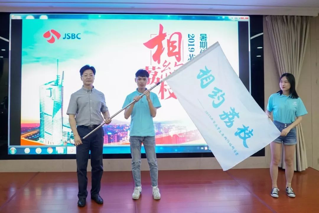 郑暐儒、曹玥分别作为台湾与大陆的员工代表进行发言,他们一致对江苏省台办、江苏广电总台提供的实习机会表达感谢,并且表达了希望在研习营中亲密接触江苏人文、增进专业技能的愿望。随后,江苏省台办副主任李卫华向员工代表授营旗。