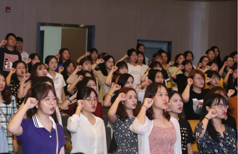 在高毅丹同学的带领下,全体新生举起右拳,进行了庄严的入学宣誓。最后,全场高唱betway88西汉姆联校歌。