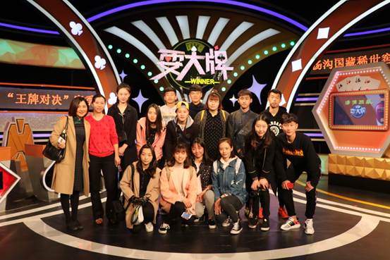 院友杨韫羽主任首先带领大家参观江苏广电总台与体育休闲频道工作环境。她重点为同学们介绍总台播控中心的基本概况。为能及时调整突然出现不可播出或的画面,这些操作就是在播控中心完成。紧接着同学们参观了《耍大牌》栏目的直播室与演播厅。《耍大牌》是江苏体育休闲频道的一档立足于全民参与真人竞技益智直播节目,将具有群众基础和地域文化特色的草根棋牌项目“掼蛋”作为依托,搭建的一个竞技休闲平台。节目总导演沈剑在演播厅介绍了节目录制的操作流程和具体拍摄时的一些细节。