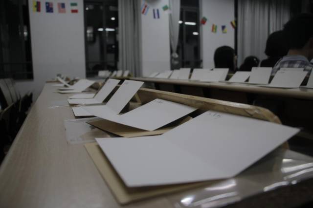 什么也阻挡不了我写贺卡的心!没座位了,那就站着写!