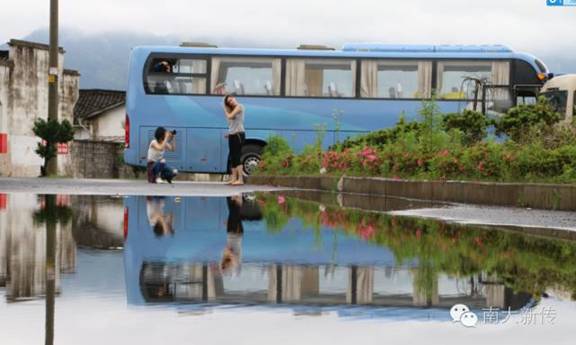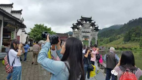 仙林大雨如注,betway88西汉姆联大二年级修读新闻摄影课程的同学们步履匆匆,冒雨前行。他们要在逸夫楼前乘车赶往皖南——此次课程实习地。