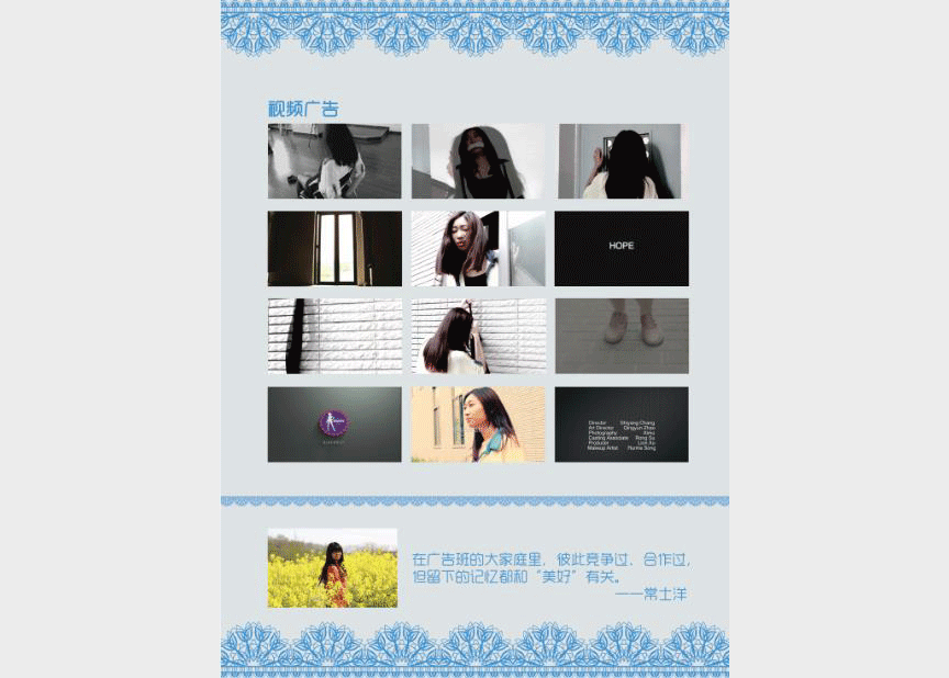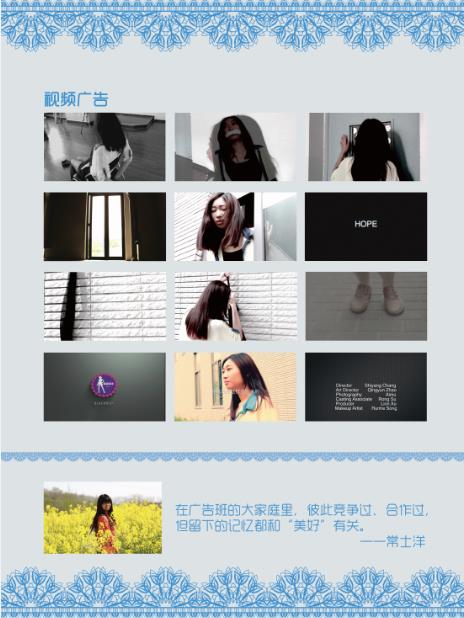 这些作品见证了四年当中广告班同学的每一分努力,每一次进步,也同时凝聚着老师们辛勤劳动的心血。在感言里,有的同学表达了对南大的深厚感情,有的同学表达了对老师们的感激,有的同学诉说了学习生活过程中的心得体验。我们相信并且期待,2010级毕业生在未来的人生道路上将创造属于自己的辉煌。