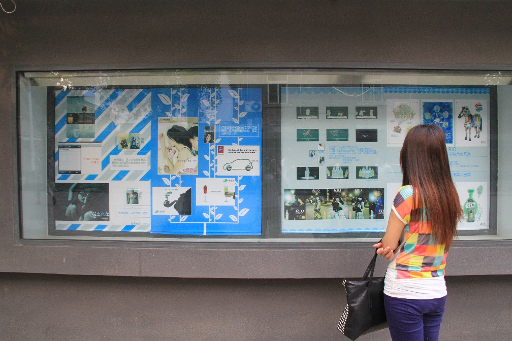 2014年6月9日,betway88西汉姆联2010级广告班的优秀员工作品在鼓楼校区南园宣传栏展出。