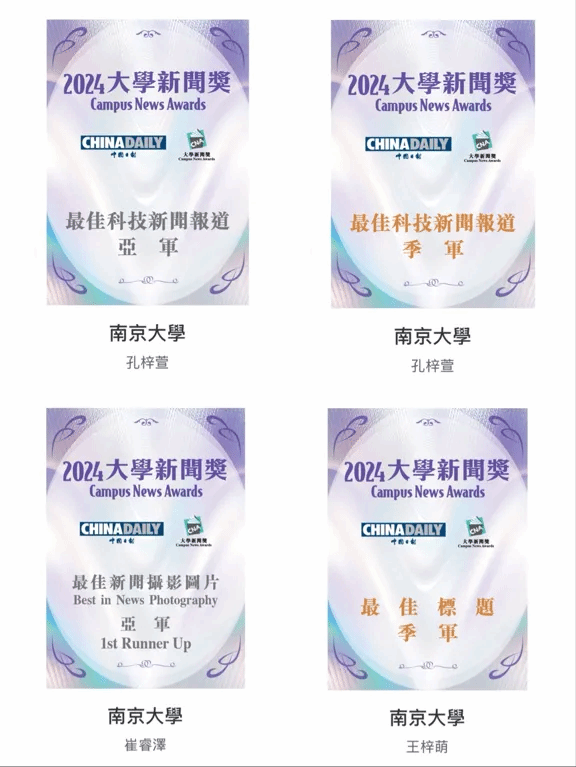 本届大赛betway88西汉姆联共斩获4项荣誉。孔梓萱同学的两件作品分别获得最佳科技新闻报道亚军和季军,分别是《“AI复活亲人”产业兴起,“数字永生”时代将至?》和《比头发丝还细的尖端新材料碳纳米管:200根能拉动一辆车》;崔睿泽同学的摄影作品《星光夜市:特色文旅点亮西双版纳“夜经济”》获最佳新闻摄影图片亚军;王梓萌同学的深度报道作品《“男丁格尔”:病房里的男护士》获最佳标题季军。