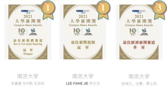 南大新传学子获2021“大学新闻奖”三项大奖
