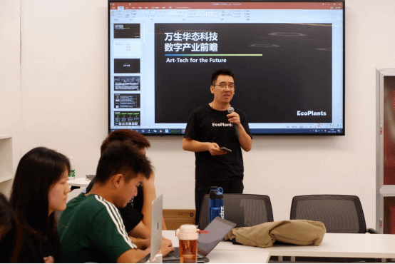 钟勇总监重点介绍了虚拟制片的流程以及国内外应用情况,他分享了一些制作流程短片,让同学们大开眼界。为了让同学们更好地体验和学习,万生华态专为同学们准备了四套场景,供员工们发挥创意,完成虚拟制片项目。
