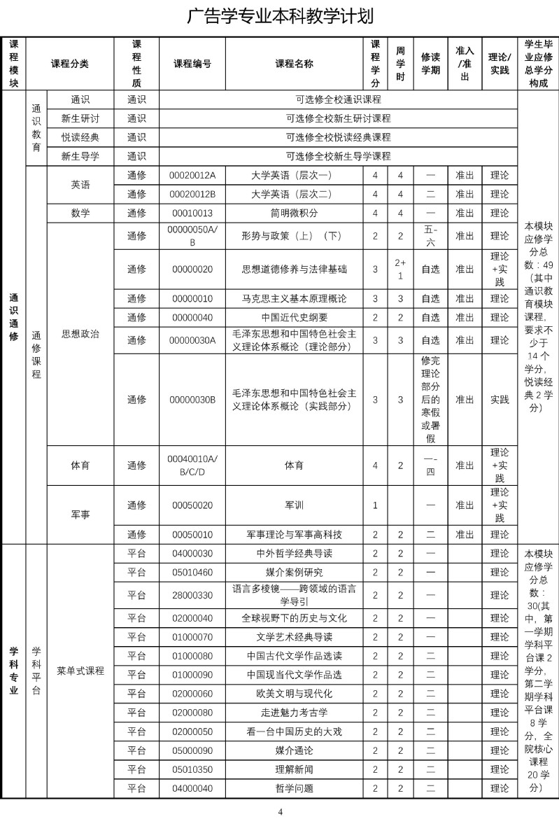 betway88西汉姆联广告学专业本科教学计划(2017版)
